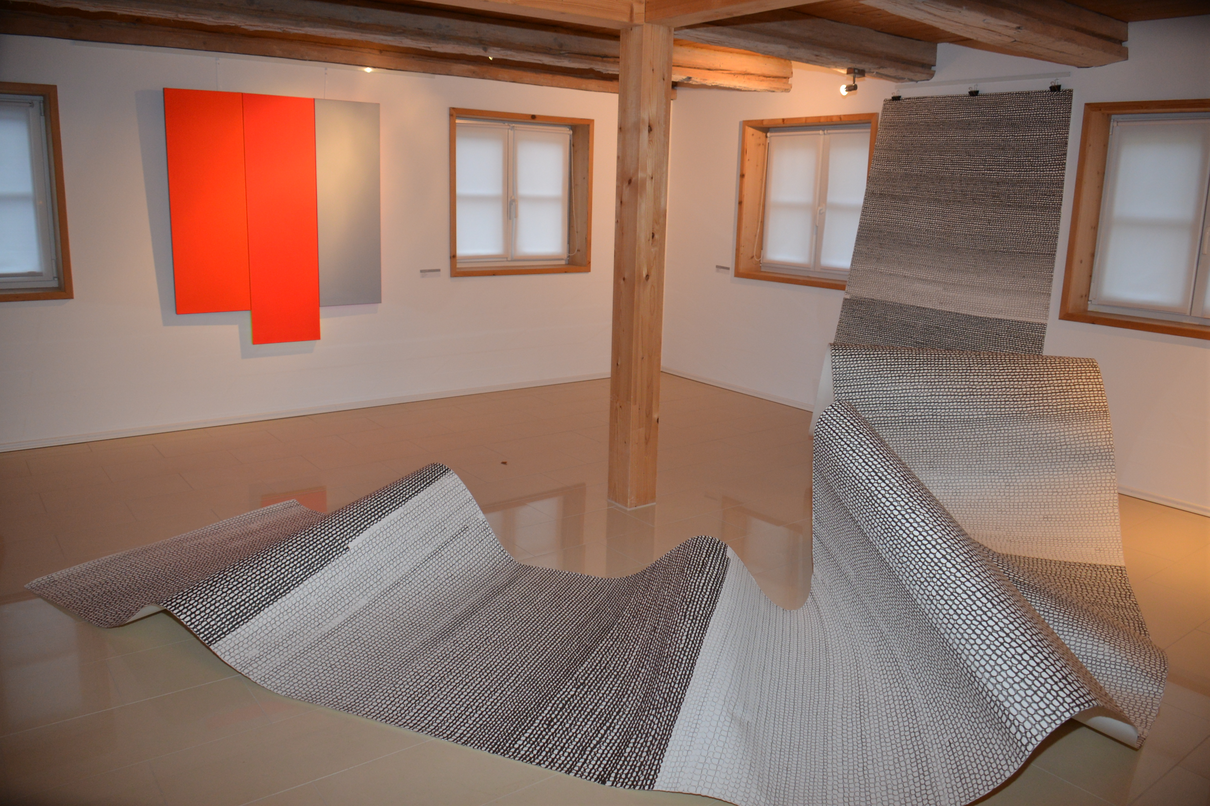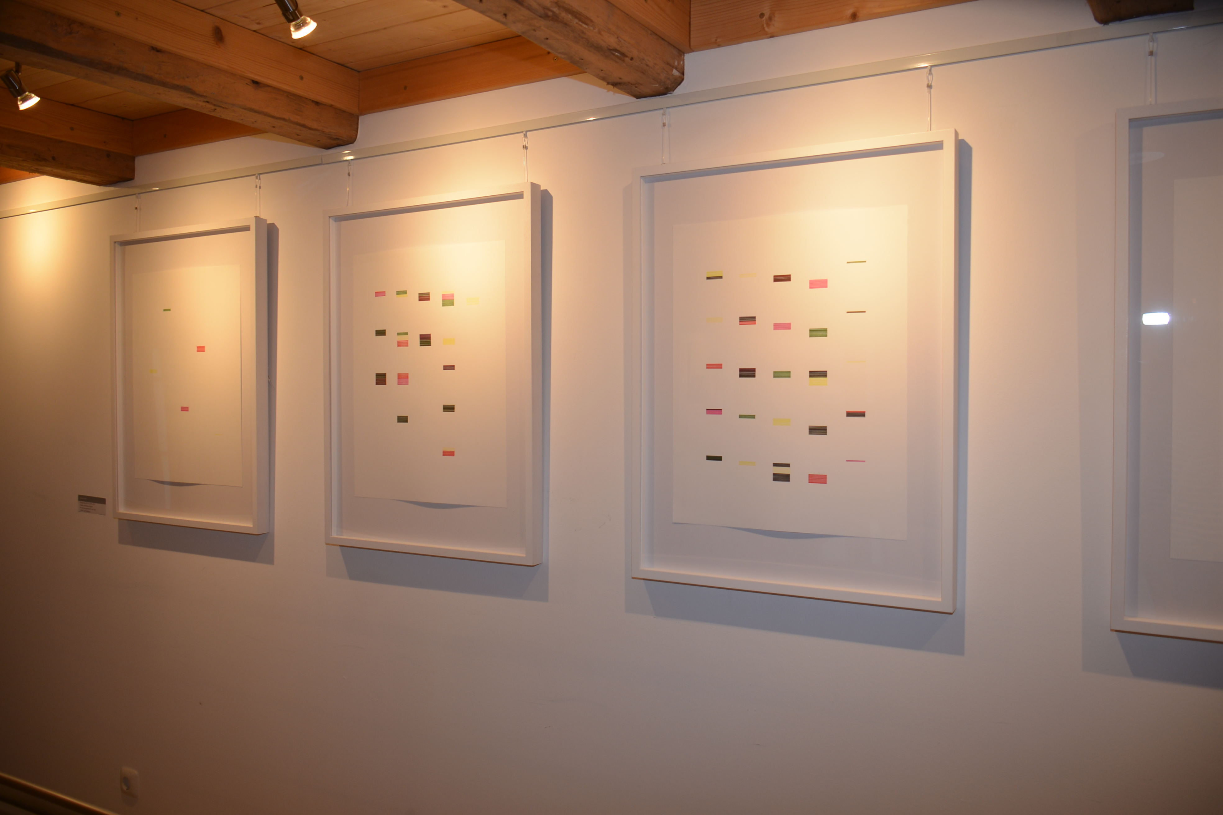 Werke folgender KünstlerInnen werden gezeigt: Barbara Back, Debora Kim, Anni Rieck, Christian Schied, John Schmitz, Ulla Ströhmann. Debora Kim, Christian Schied und Ulla Ströhmann sind der Richtung der Konkreten Kunst zuzuordnen, unterscheiden sich aber unter anderem durch die verwendeten Materialien: So bespannt Kim geometrische Körper mit farbigen Garnen, deren Lineatur sich zu Flächen verdichten; Ströhmann verbindet monochrome Bildflächen aus organischem Wachs mit glänzenden Flächen aus Aluminium, Gold, Kupfer und Silber; Schieds Werken liegen malerische Flächen zugrunde, die unter Einbeziehung des Raumes ein rhythmisiertes Bildgeflecht aus positiven und negativen Formen ergeben. Diese Vielfalt wird ergänzt durch die Objekte von Barbara Back, Anni Rieck und John Schmitz. Während Back mit gefaltetem, gestülptem oder geschlungenem Baumwollmolton auf die Gestaltung der Gewandfalte auf historischen Altargemälden Bezug nimmt, erschafft Rieck mit ihren Werkzyklen „Memoiren“ und „Membran“ fragile Objekte aus Japan- und Seidenpapier sowie einem filigranen Drahtgerüst, die von literarischen Werken von Ferdinand von Schirach und Marlen Haushofer inspiriert sind. Der Konzeptkünstler John Schmitz gestaltet hingegen seit 2012 eine fortlaufende und zeitlich unbegrenzte Serie aus Bleistift, Feder, Tinte und Zeichenbögen, die mit der liegenden Acht, dem Zeichen der Unendlichkeit befüllt sind.