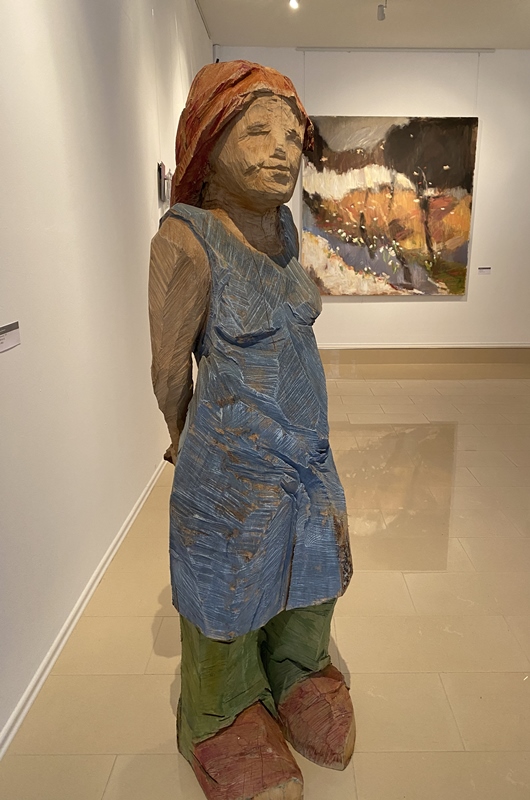 Julia Hiemers große Skulpturen lassen ihren Ursprung - den Baumstamm erkennen. Zunächst erscheinen sie als grobe, mit der Motorsäge bearbeitete Figuren. Bei genauerer Betrachtung hingegen, offenbart sich der Charakter des Holzes, der sich erst bei der Bearbeitung zeigt. Im nachvollziehbaren, kreativen Akt der Entstehung der Skulpturen bestimmen die spezifischen Eigenschaft des Holzes formal aber auch inhaltlich das Aussehen und das Wesen der Figur.