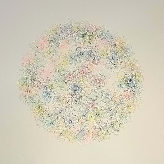 Die Planetenzeichnungen begleiten die Künstlerin Silvia Jung-Wiesenmayer bereits seit Langem. Der Übertitel ihrer Finelinerzeichnungen lautet "verblassen" und weist auf die Vergänglichkeit von Strich und Farbe hin, denn sie sind nicht lichtecht. Die Planeten setzen sich aus frei erfundenen Formen, spielerischen Naturelementen, Strichen und Punkten zusammen, sind leicht oder verdichten sich und sind buntfarbig oder düstergrau.
