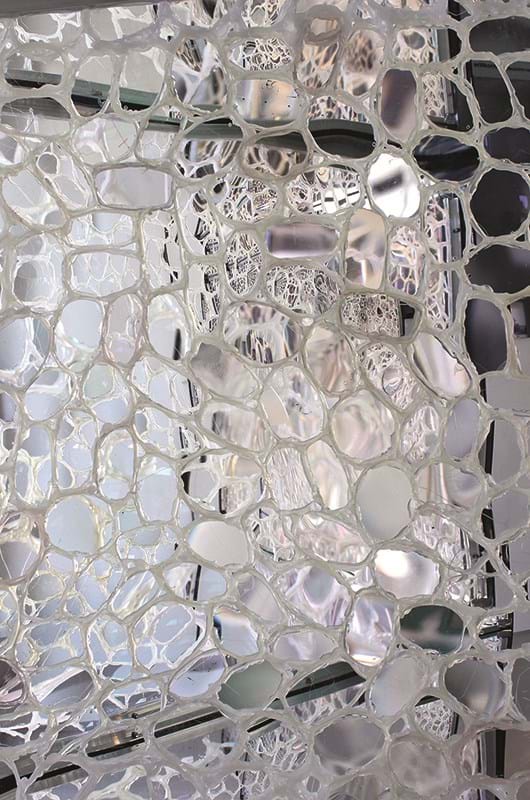 „Observatorium Bauteil 10“ ist das jüngste Werk einer Serie von Arbeiten des Künstlers mit Brillengläsern, die seit 2010 in immer neuen, meist raumbezogenen Variationen weitergeführt wird. Die unterschiedlichen Linsen multiplizieren den Betrachterblick und stellen ihn auf ganz verschiedenen Bildebenen scharf. Das Objekt schwankt zwischen optischem Effekt und beängstigender Dinglichkeit. Die Linse als Prototyp wissenschaftlichen Beobachtens einerseits, das Vanitassymbol der abgelegten Brille andererseits. Was haben die Augen gesehen, für die diese Linsen zurechtgeschliffen sind?